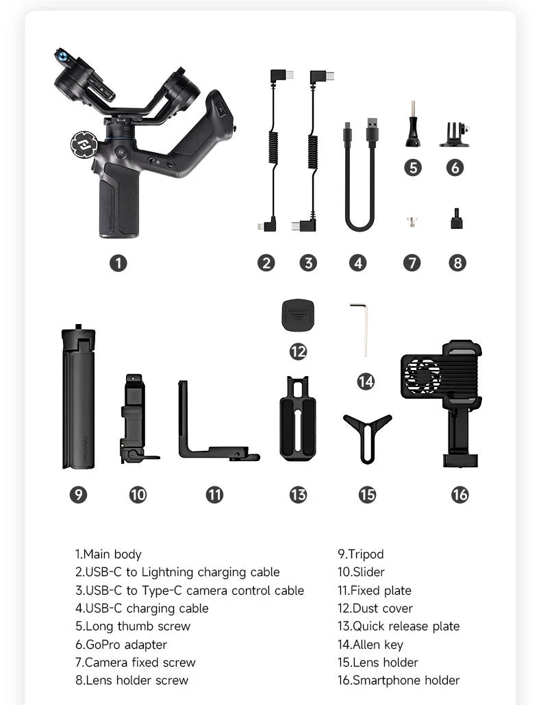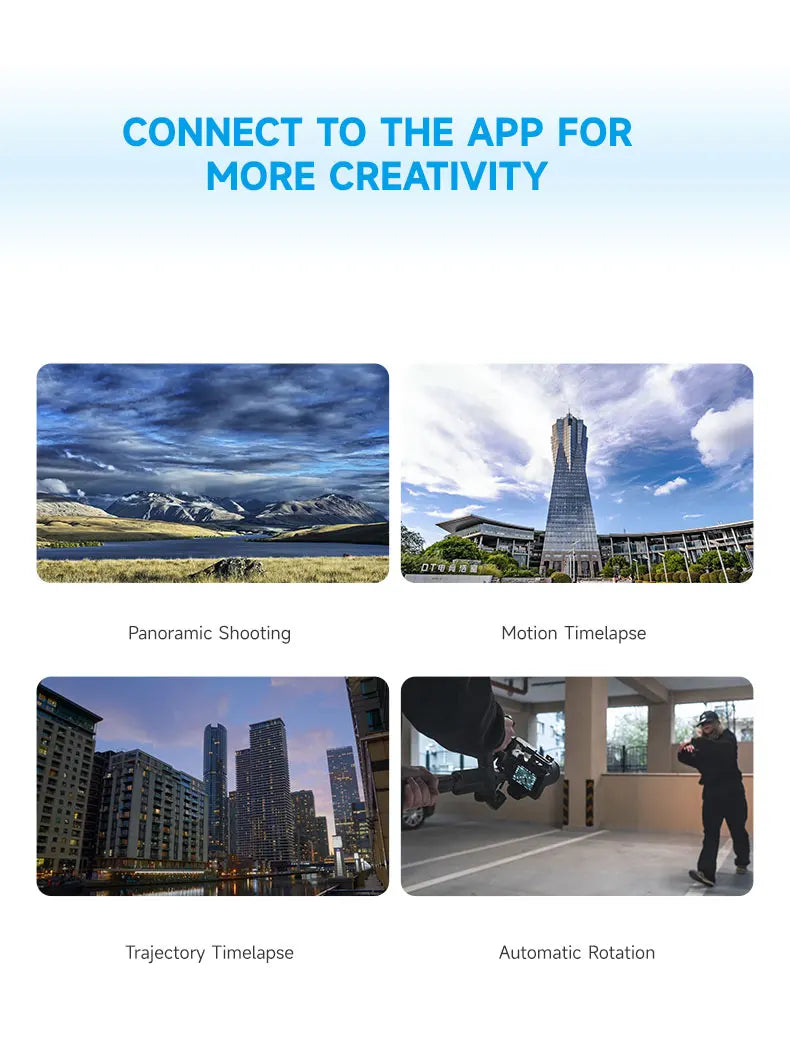 Questa impugnatura offre un supporto ergonomico per l'utilizzo con una sola mano, rendendola ideale per ambienti di ripresa dinamici o configurazioni mobili. L'app di accompagnamento supporta sia l'inglese che il cinese semplificato, consentendo un accesso intuitivo alle impostazioni di controllo e alle regolazioni in tempo reale.