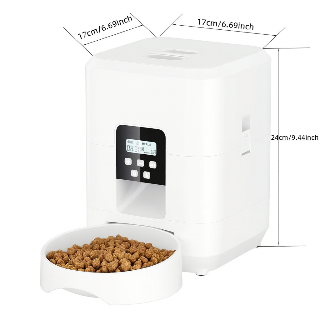 Smart Pet Feeder - Distributore automatico di cibo per cani e gatti da 2 litri con porzioni temporizzate e controllo tramite APP