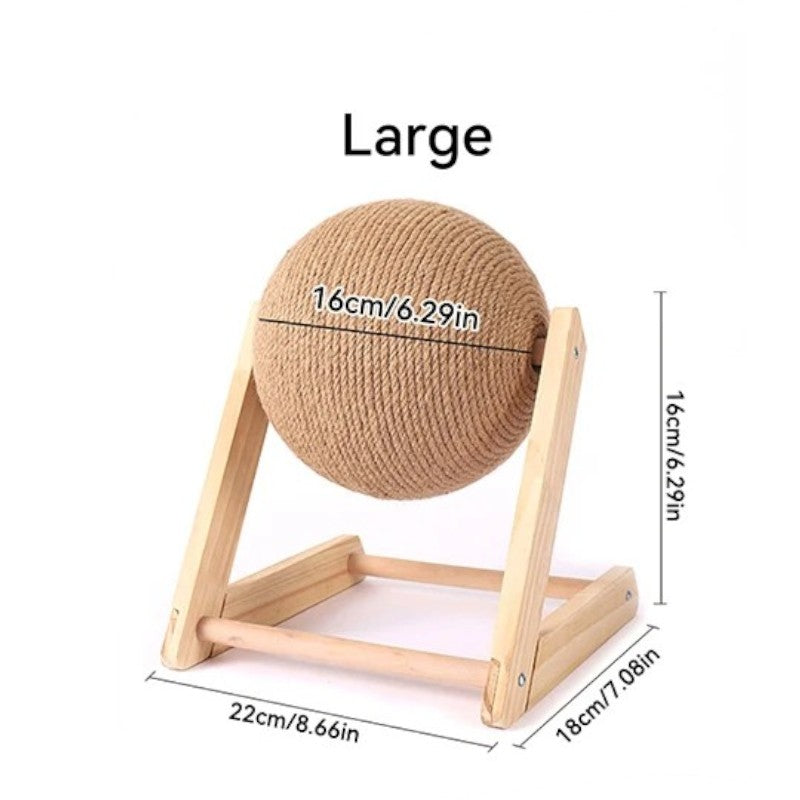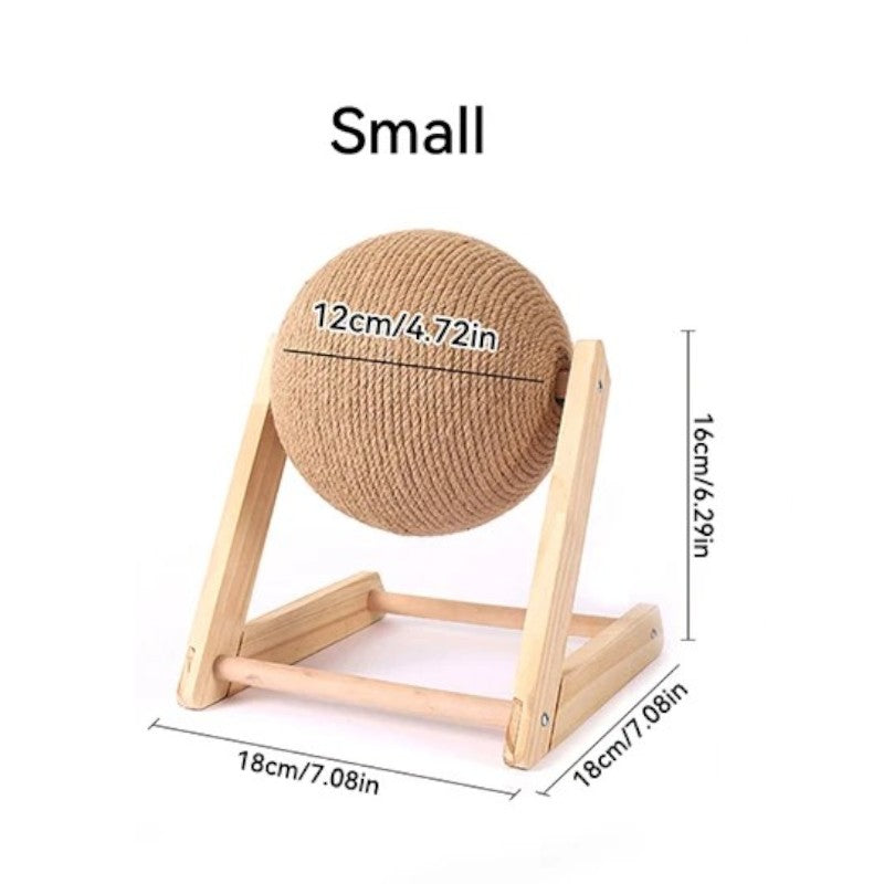 Cat scratching ball made of natural wood and sisal rope. Protects furniture, satisfies scratching instinct and adds a playful, stylish touch to any home.