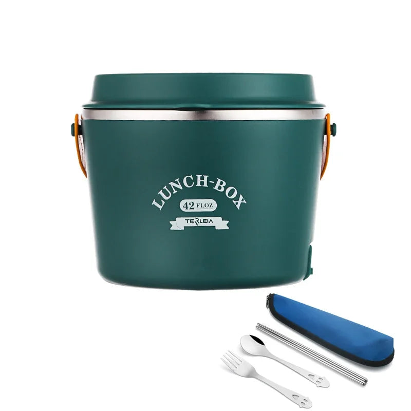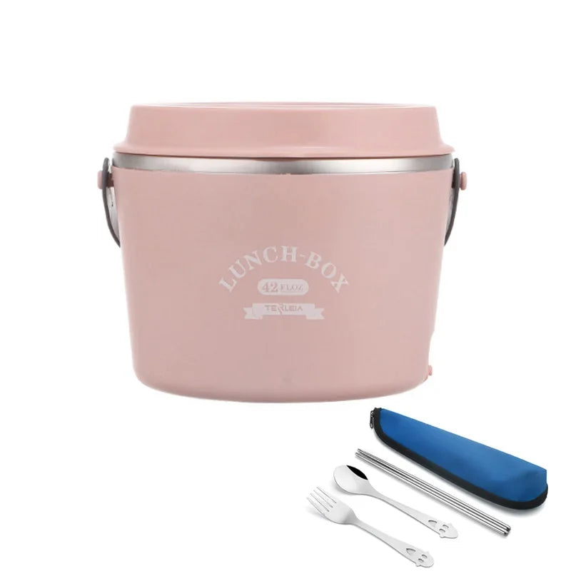 Portable Lunch Box Electric Stainless Steel Food Warmer with Cutlery for Office, Car, Travel & Picnic | 12V 24V 110V 220V Thermostat Heater