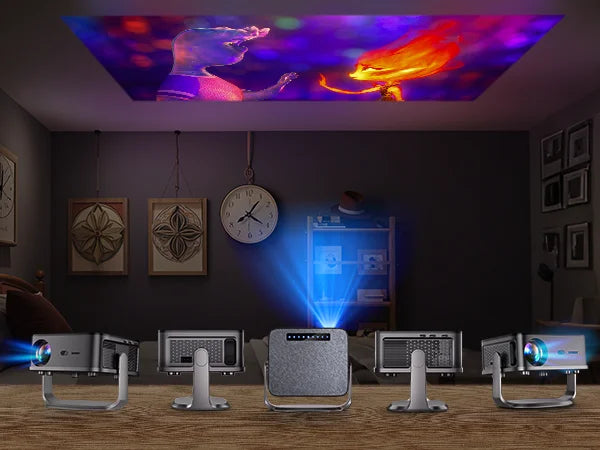 Experience bright, sharp visuals up to 300", Android 12, 8K decoding, auto-focus, and rich HiFi sound. Connect via HDMI, USB, Bluetooth, Miracast, or AirPlay.