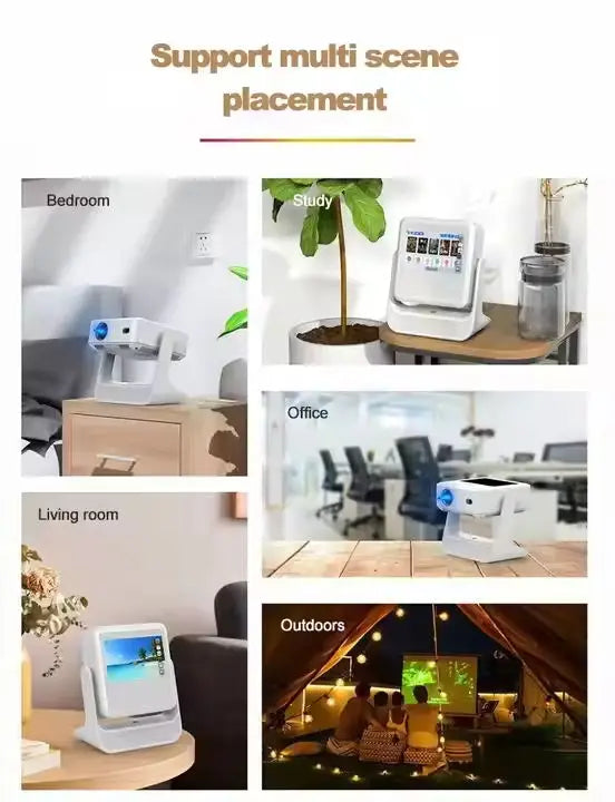 YDH-C3 Dual Screen Projector con immagini nitide in Full HD, supporto 4K, WiFi6 e funzioni smart Android. Compatto, portatile e perfetto per presentazioni o ambienti didattici.